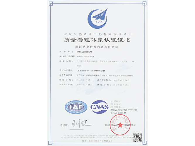 公司創(chuàng)辦于2009年4月,是博萊特紙業(yè)基礎(chǔ)上的轉(zhuǎn)型升級(jí)和延伸產(chǎn)業(yè)鏈,專(zhuān)門(mén)從事紙容器的制造和加工,公司引進(jìn)國(guó)際一流、技術(shù)裝備先進(jìn)的臺(tái)灣祥藝2.5米寬門(mén)幅、高車(chē)速三層、五層瓦楞紙板生產(chǎn)線(xiàn)兩條;先進(jìn)的全自動(dòng)高速四色印刷、開(kāi)槽、模切真空吸附于一體的印刷機(jī)兩臺(tái);全自動(dòng)模切機(jī)兩臺(tái),全自動(dòng)釘粘一體聯(lián)動(dòng)線(xiàn)一條,目前公司正計(jì)劃引進(jìn)國(guó)際一流的固定式高速印刷機(jī)一臺(tái)。公司已通過(guò)ISO9001質(zhì)量管理體系認(rèn)證與沃爾瑪認(rèn)證,2017年被評(píng)定為國(guó)家高新技術(shù)企業(yè),2018年實(shí)現(xiàn)工業(yè)產(chǎn)值3.3億元,2019年期望成為產(chǎn)值達(dá)5億的紙制品制造企業(yè)。